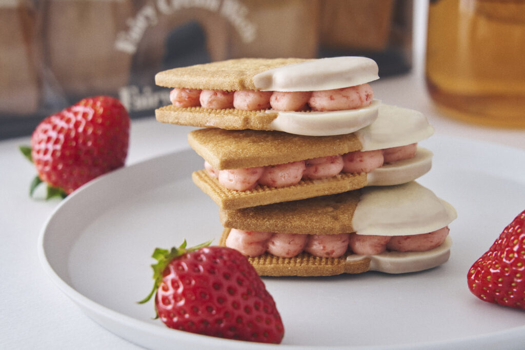 奈良県明日香村産の希少いちご「古都華(ことか)」を贅沢に使った生バターサンドや、春色のいちごカップケーキに加え、日々の時間にそっと寄り添うビスケット缶まで。